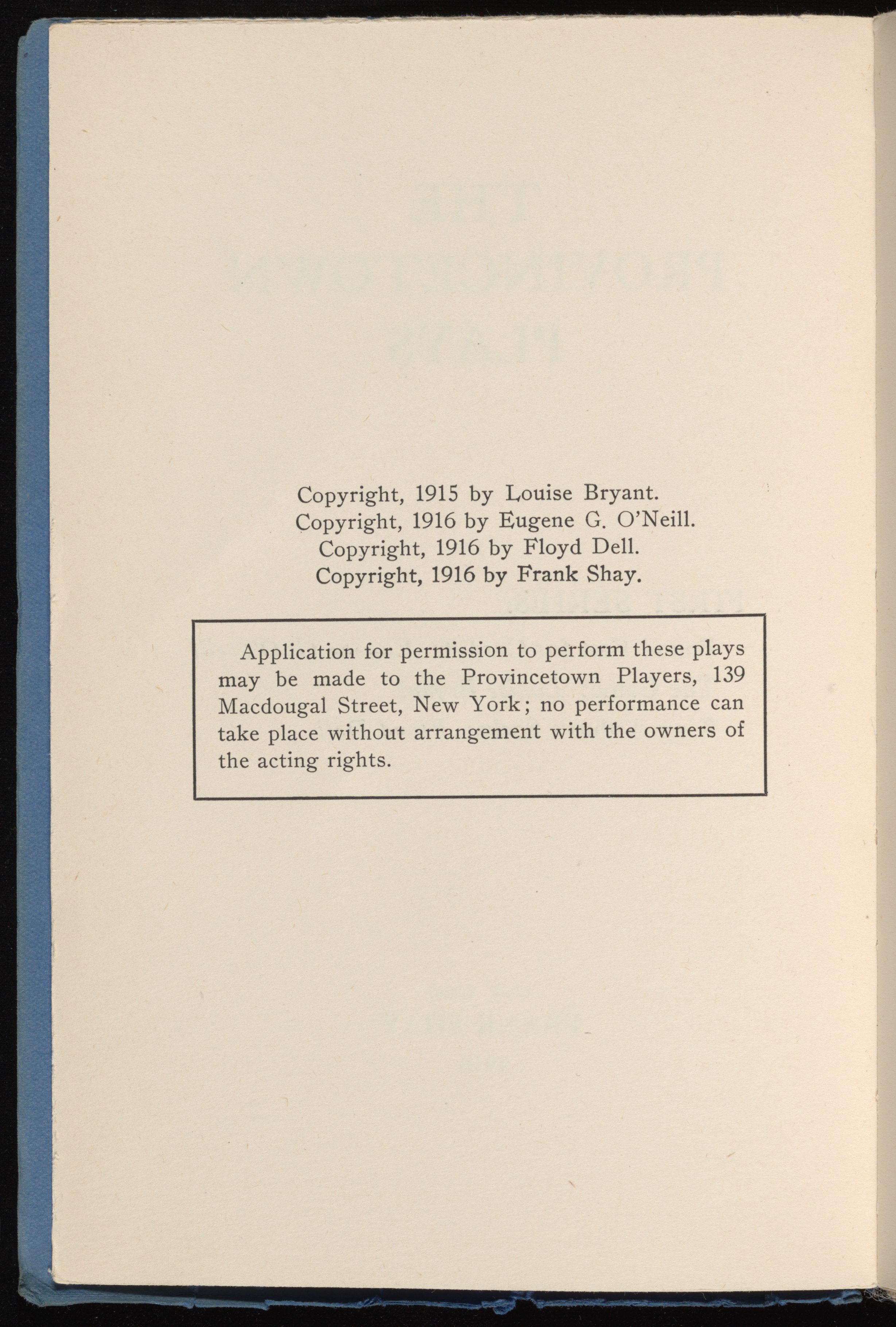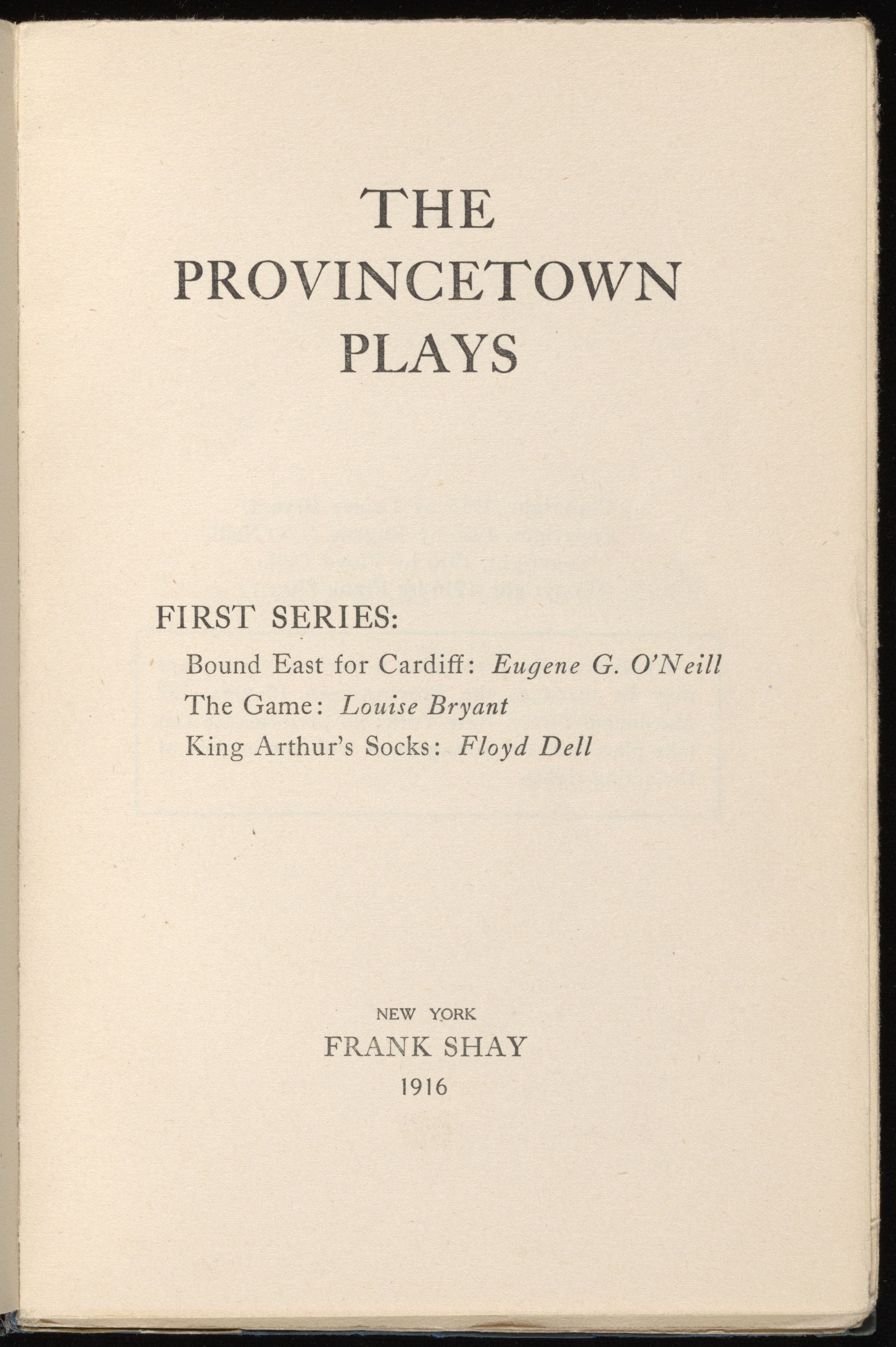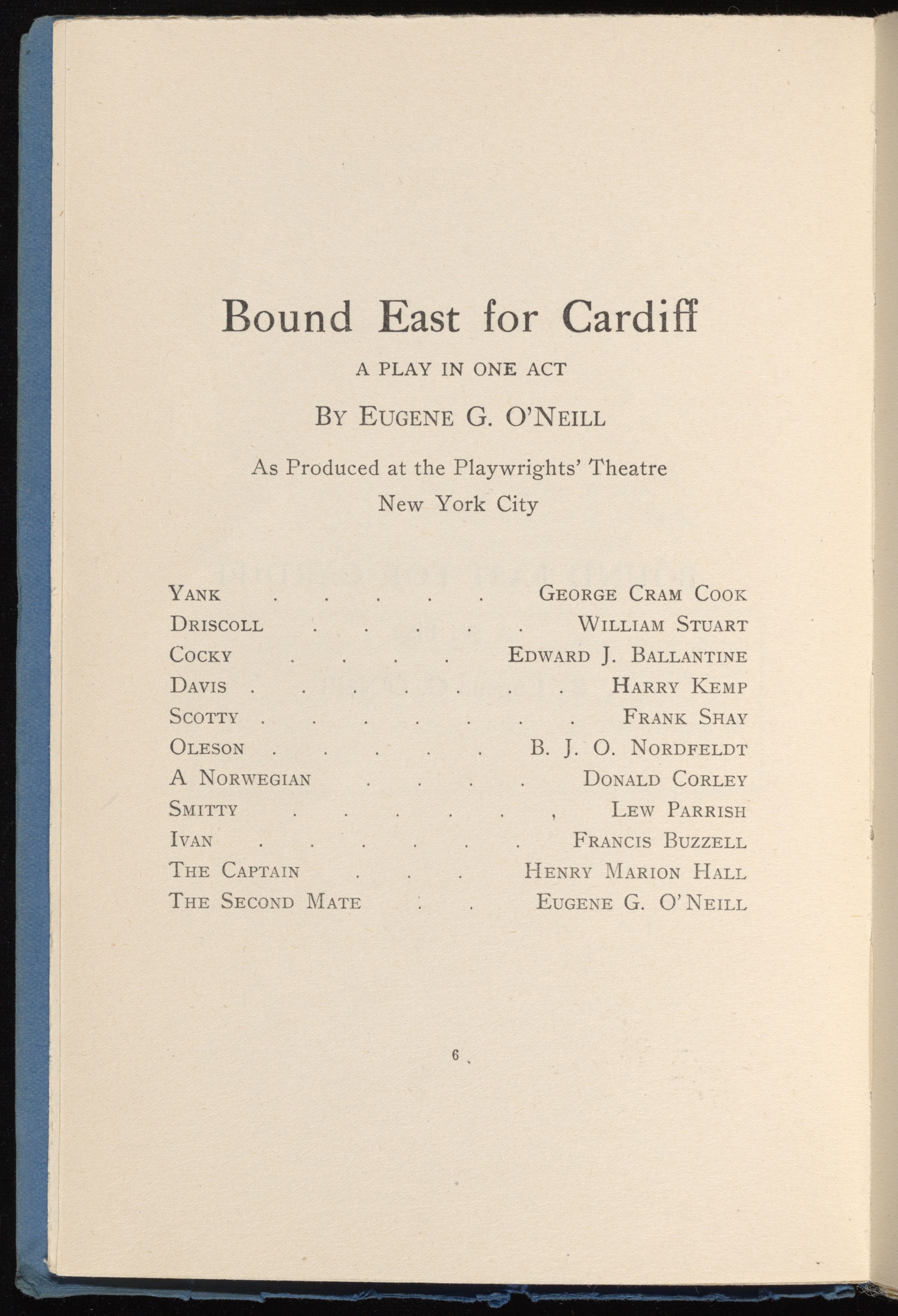 O’Neill, Eugene. 1915. "Bound East for Cardiff" in The Provincetown Plays First Series. eOneill.Com: An Electronic Eugene O’Neill Archive. Frank Shay, The Assembled Playwright: Harley Hammerman's Eugene O'Neill Collection, accessed April 5, 2026, http://18.118.214.58/s/assembled-playwright/item/48499