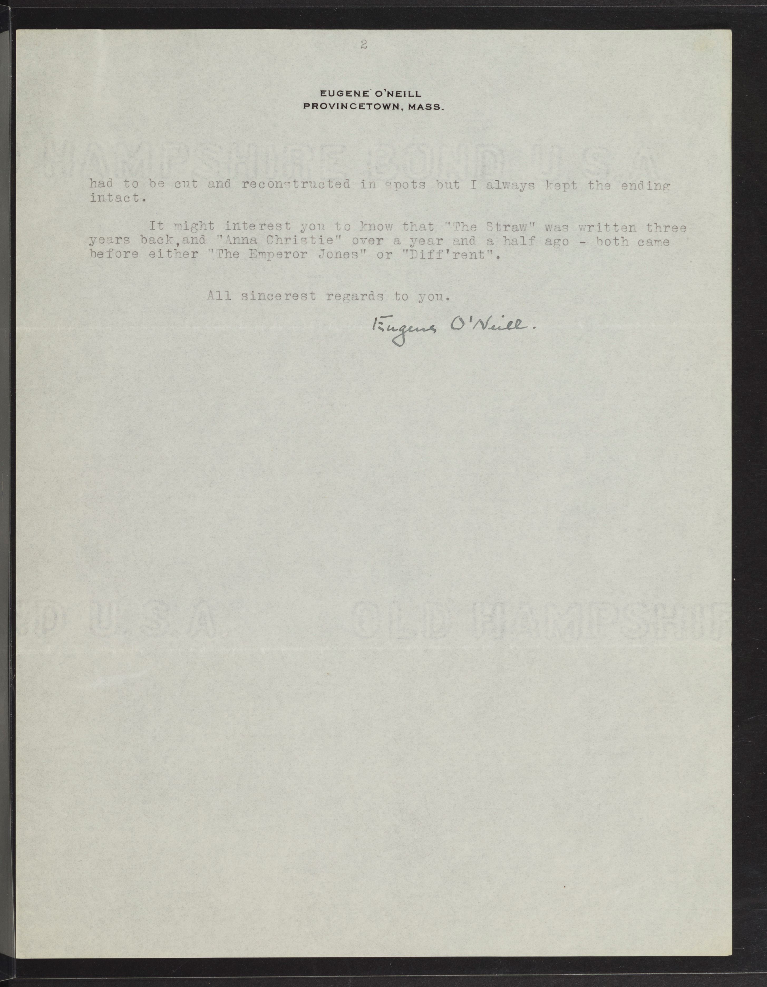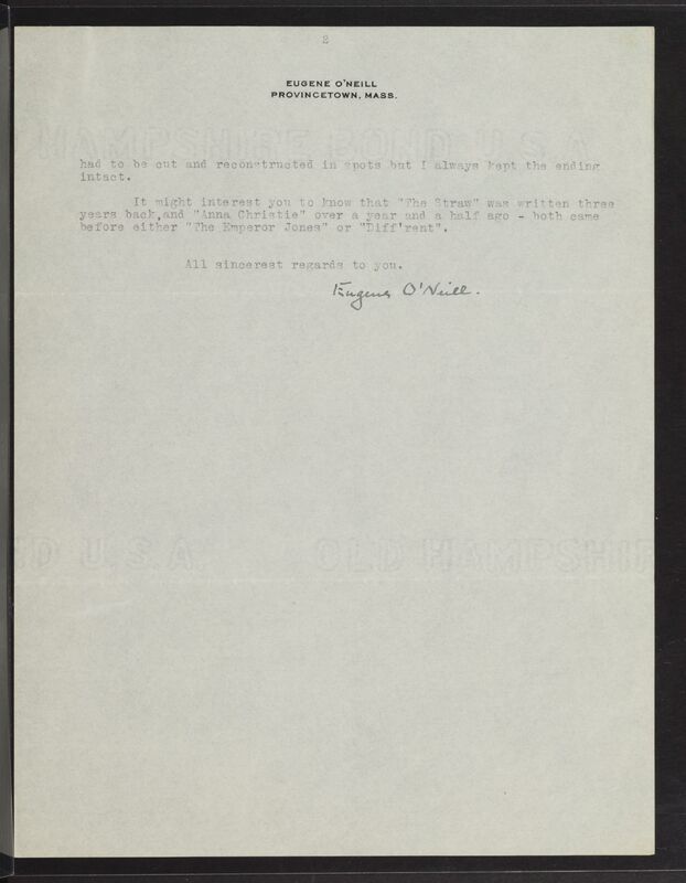 O’Neill, Eugene. 1921. Eugene O’Neill to Ernest Boyd. eOneill.Com: An Electronic Eugene O’Neill Archive, The Assembled Playwright: Harley Hammerman's Eugene O'Neill Collection, accessed April 5, 2026, http://18.118.214.58/s/assembled-playwright/item/48537