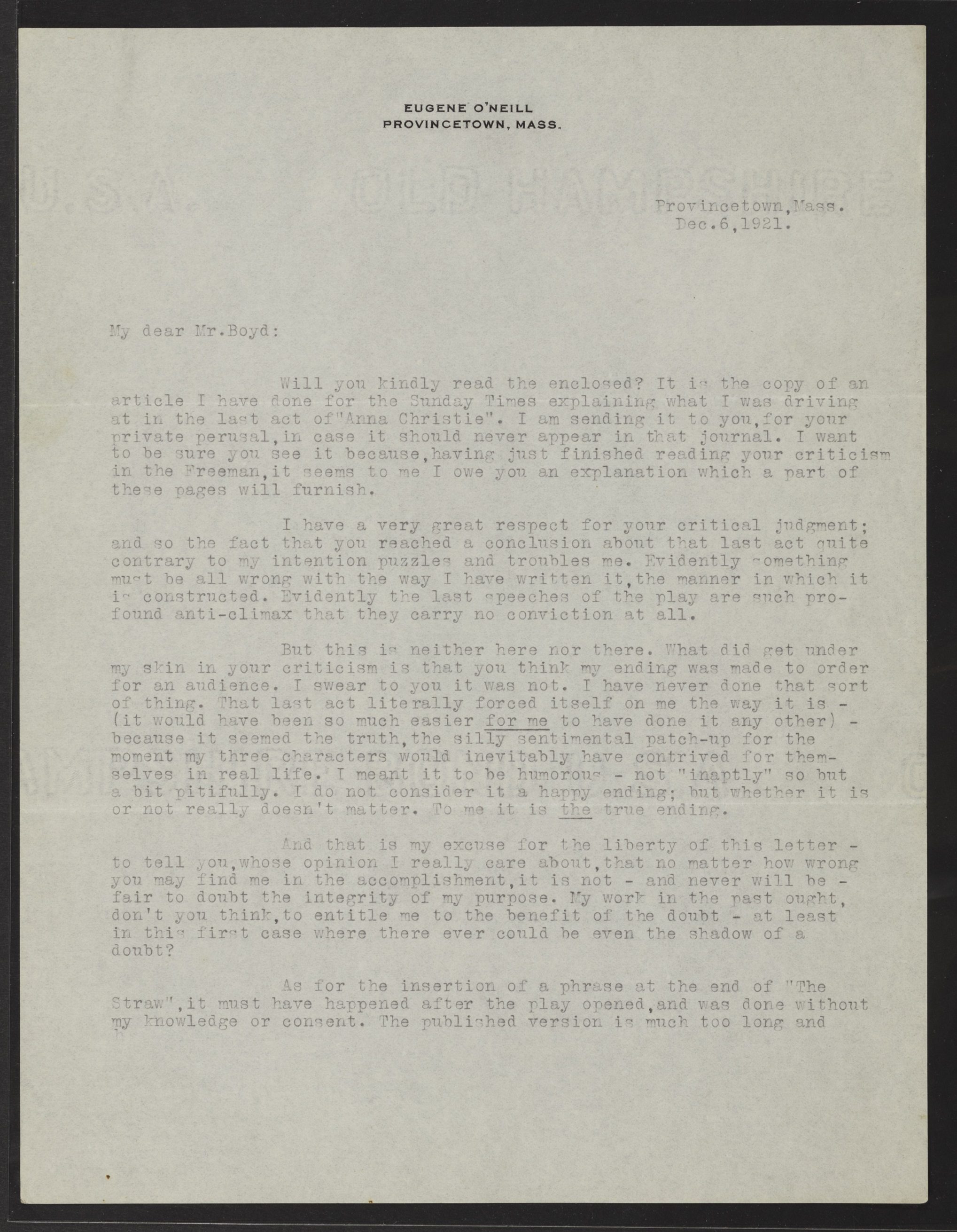 Eugene O’Neill to Ernest Boyd