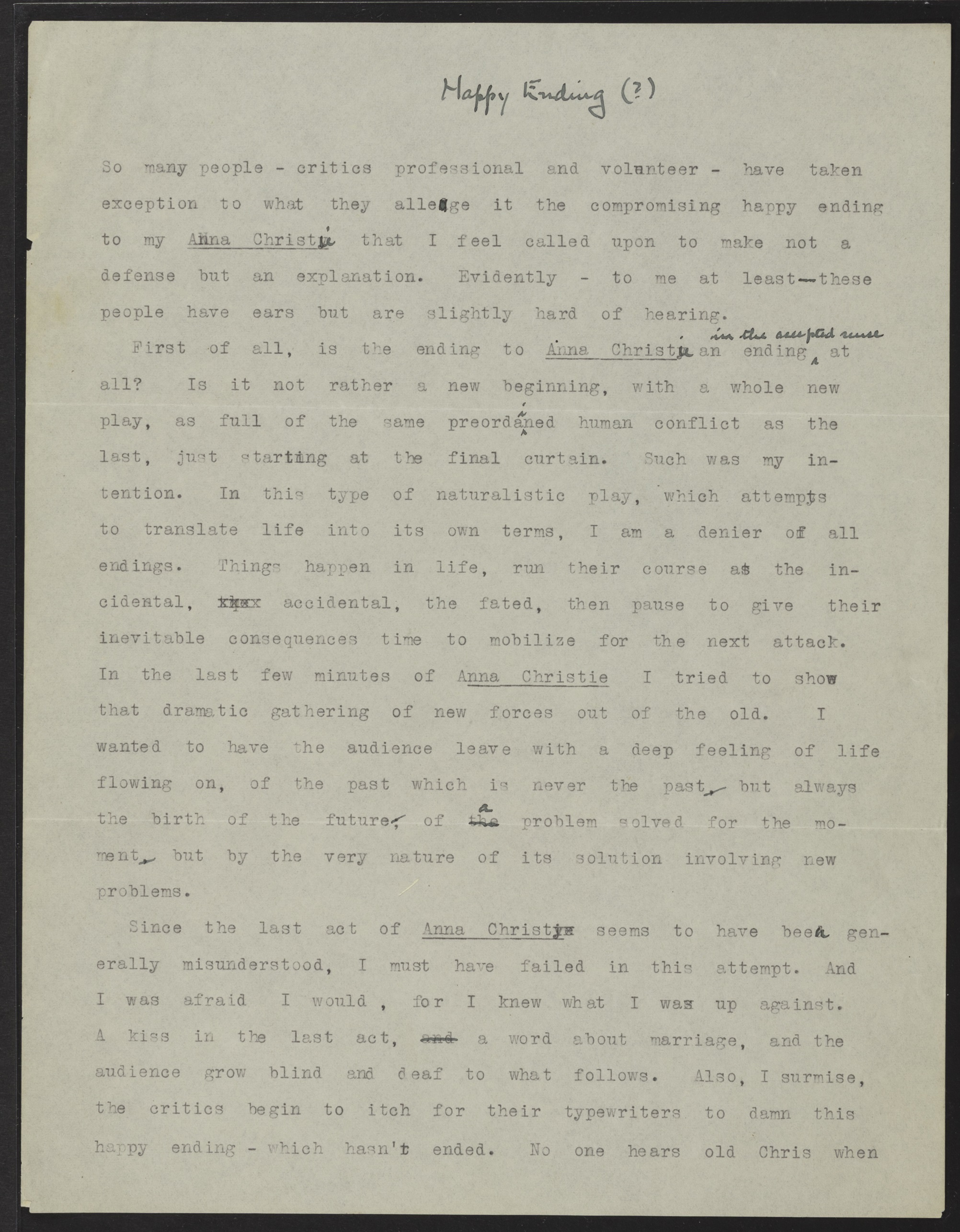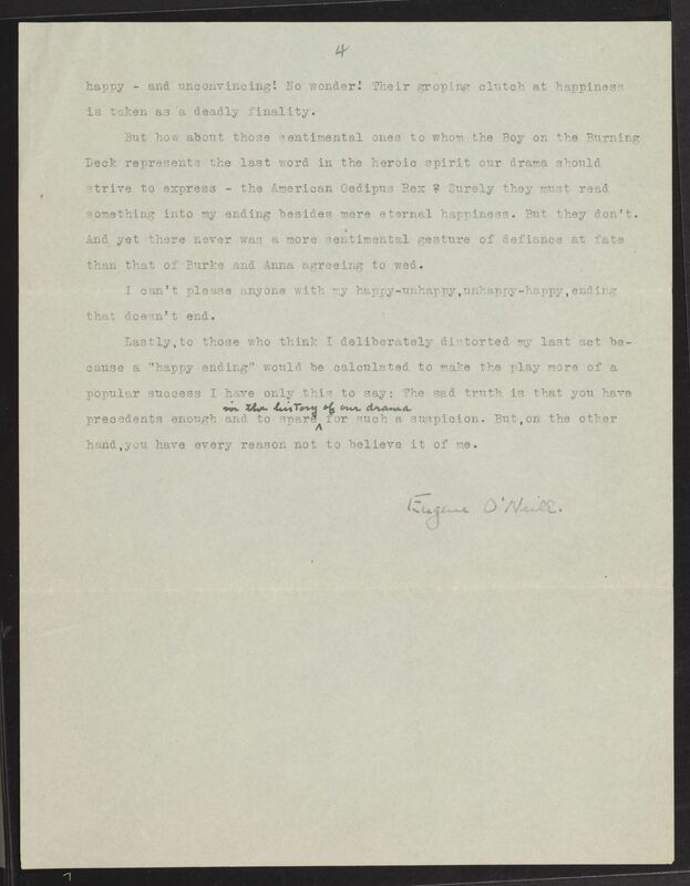 O’Neill, Eugene. 1921. "Happy Ending (?)" Typescript. eOneill.Com: An Electronic Eugene O’Neill Archive, The Assembled Playwright: Harley Hammerman's Eugene O'Neill Collection, accessed April 5, 2026, http://18.118.214.58/s/assembled-playwright/item/48539
