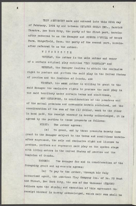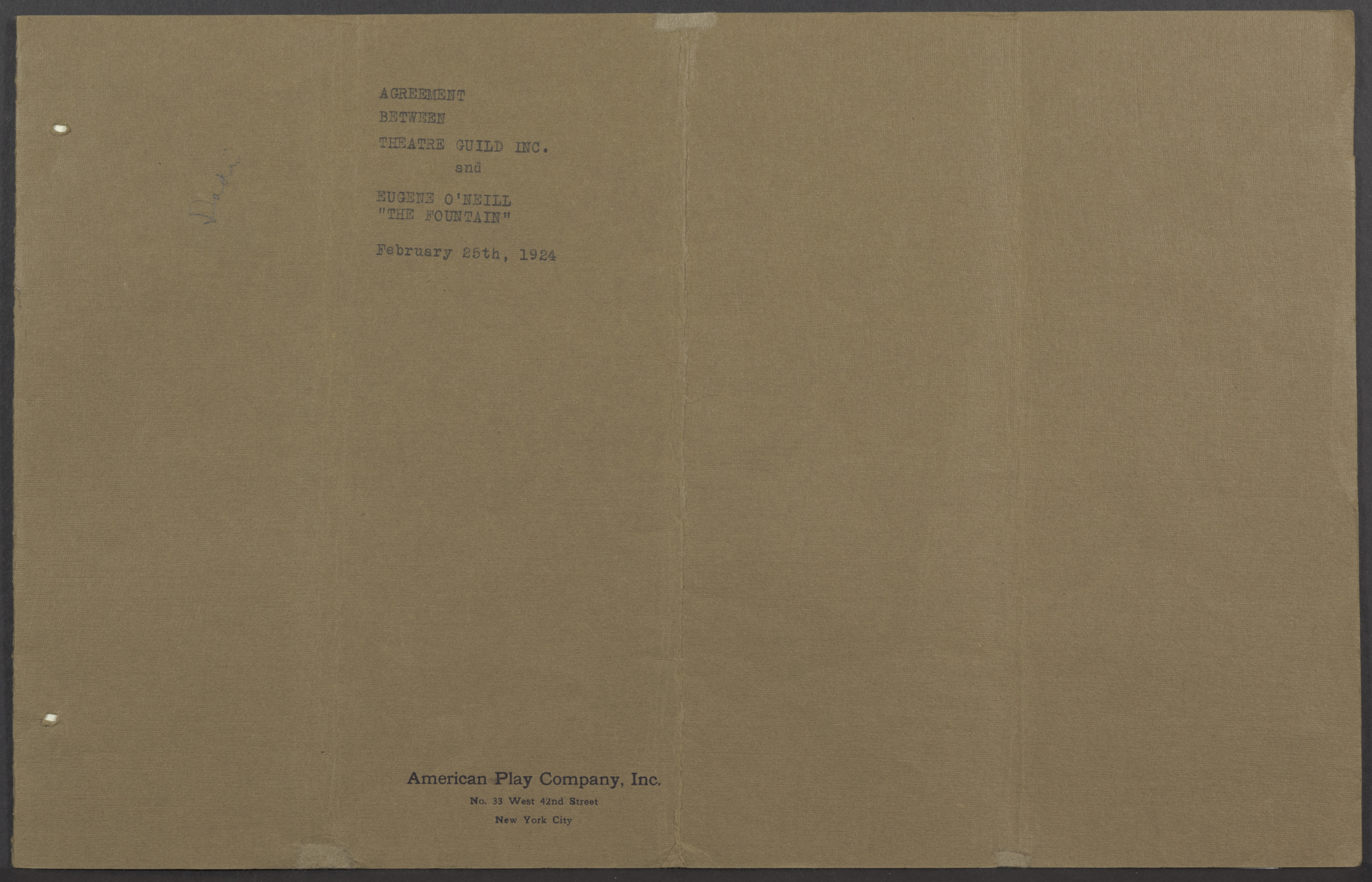 O’Neill, Eugene. 1924. The Fountain Contract. eOneill.Com: An Electronic Eugene O’Neill Archive, The Assembled Playwright: Harley Hammerman's Eugene O'Neill Collection, accessed April 5, 2026, http://18.118.214.58/s/assembled-playwright/item/48545