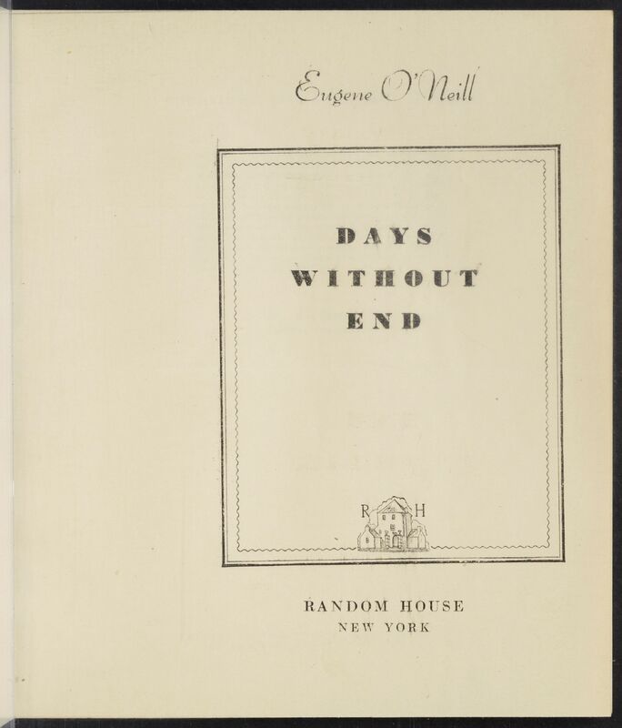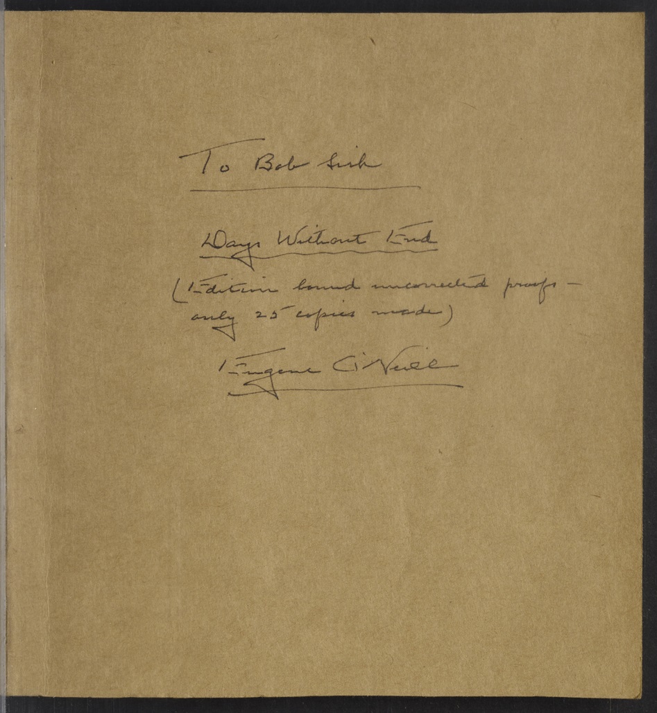 O’Neill, Eugen. 1933. Days Without End Galley Proof Inscribed to Robert Sisk. Random House, The Assembled Playwright: Harley Hammerman's Eugene O'Neill Collection, accessed April 5, 2026, http://18.118.214.58/s/assembled-playwright/item/48576