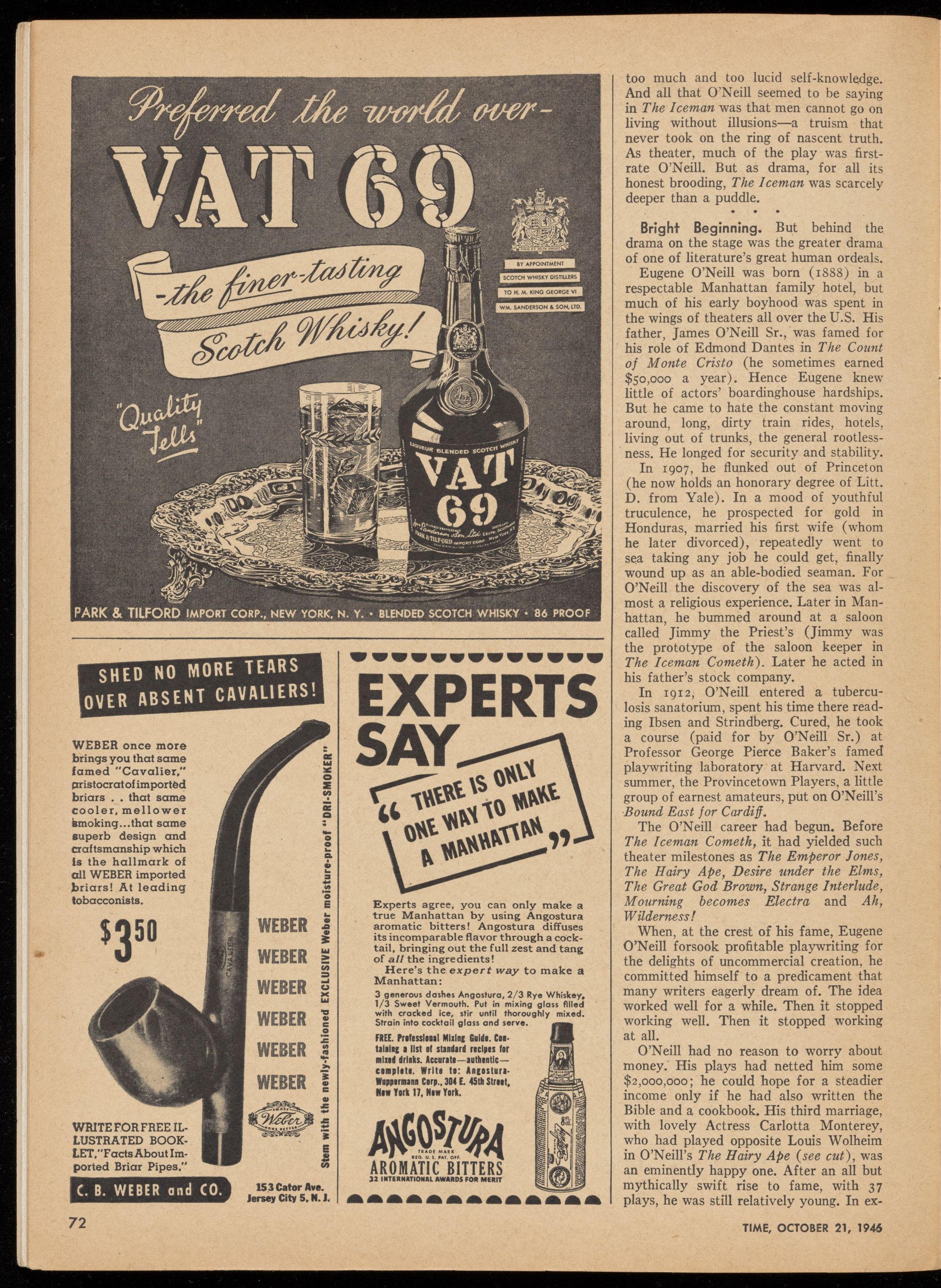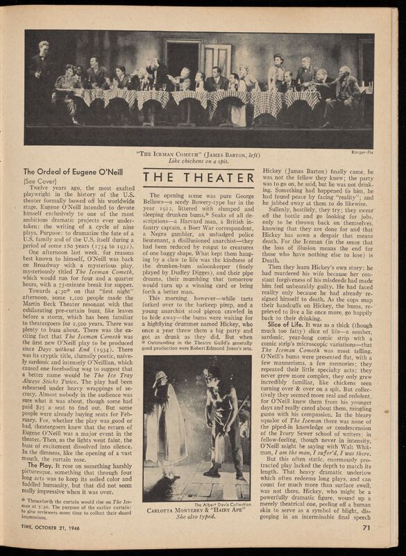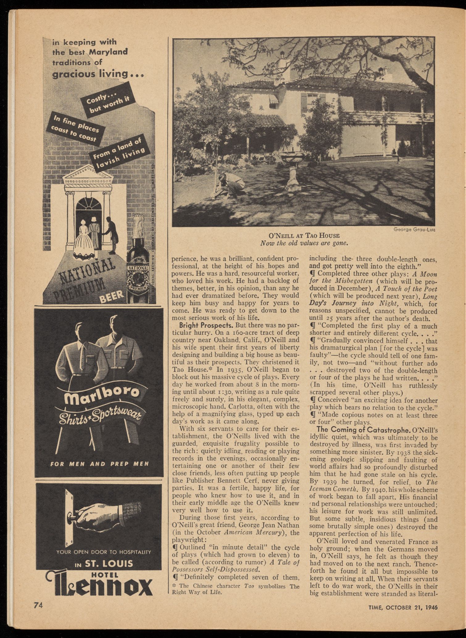 O’Neill, Eugene. 1946. “The Ordeal of Eugene O’Neill” in Time. eOneill.Com: An Electronic Eugene O’Neill Archive. Times: Volume 48, number 17, The Assembled Playwright: Harley Hammerman's Eugene O'Neill Collection, accessed April 5, 2026, http://18.118.214.58/s/assembled-playwright/item/49399