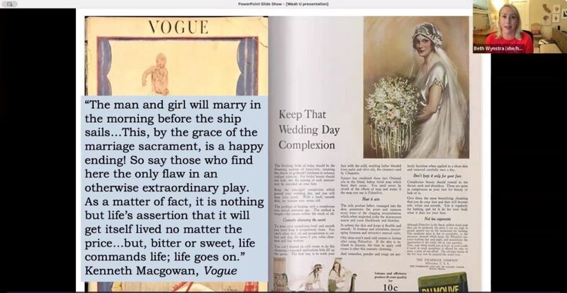 Beth Wynstra, associate professor of English at Babson College, and author of Vows, Veils, and Masks: The Performance of Marriage in the Plays of Eugene O’Neill (University of Iowa Press, 2023), presented the first of two plenary addresses. In “Between the Covers: Roles, Performance, and Eugene O’Neill in Early 20th Century Women’s Magazines,” Wynstra compared O’Neill’s depictions of married women on the stage to depictions of the same in contemporary popular magazines, and doing so proposed new possibilities for studying marriages and wife characters in literary and dramatic texts.