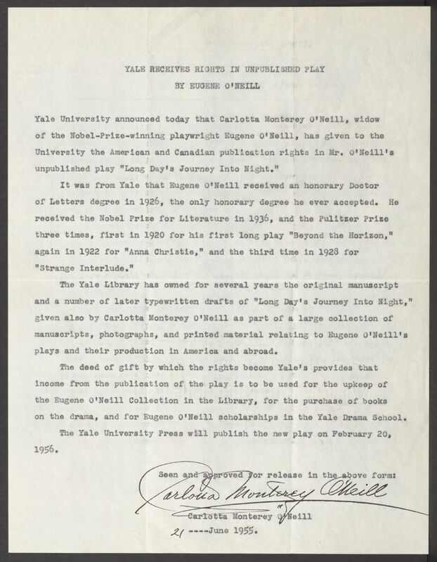 The Eugene O'Neill Theater Center in Waterford, Connecticut fosters the development of new plays under his name, and there is a theatre in midtown-Manhattan named after him which stages major plays and musicals. Major archival collections are held at universities such as Connecticut College, University of Texas, Washington University and Yale University.